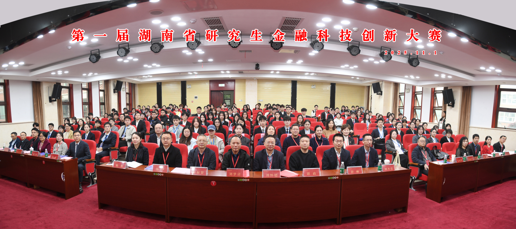 (通讯员 杜梓郁)为深入贯彻落实党的二十届三中、四中全会精神、助力“加快建设金融强国”,由湖南省教育厅主办,湖南师范大学承办,宏观经济大数据挖掘与应用湖南省重点实验室协办的第一届湖南省研究生金融科技创新大赛决赛于2025年11月1日在我校顺利举行。省教育厅学位管理与研究生教育处二级调研员刘梦清,我校党委委员、副校长刘怀德,研究生院副院长苏涵琼出席开幕式。我校商学院党委书记龚舒主持开幕式。出席开幕式的还有来自湖南省委金融办、湖南金融监管局、中国人民银行湖南省分行、湖南省证券行业协会、长沙市委金融办、中泰证券、中南大学、湖南大学等二十名行业专家与高校评委。